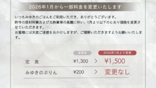 いつもみゆきのごはんをご利用いただき、ありがとうございます。昨今の原材料費および光熱費等の高騰に伴い、2026年1月より以下のとおり価格を改定させていただきます。お客様には大変ご迷惑をおかけしますが、ご理解いただきますようお願いいいたします...