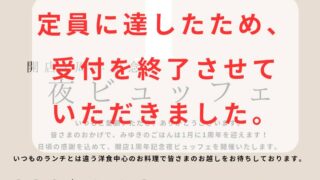 【完売御礼】開店一周年を記念して、夜ビュッフェを開催します