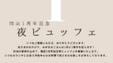 【完売御礼】開店一周年を記念して、夜ビュッフェを開催します